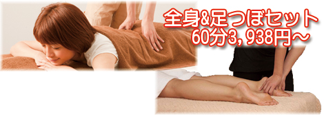 当店人気No1の全身もみほぐしコースと、OL・主婦に大人気の足裏もみほぐしコースをセットでお届け!